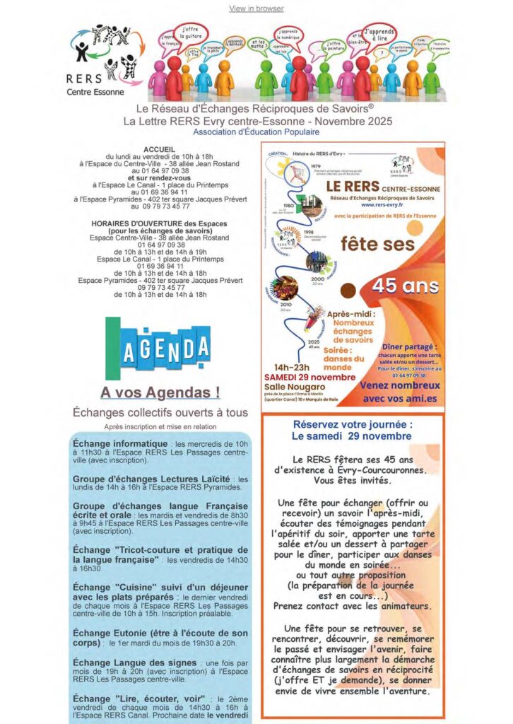 Bienvenue sur le site RERS Réseau d’Échanges Réciproques de Savoirs® d’Évry centre-Essonne – Centre Social